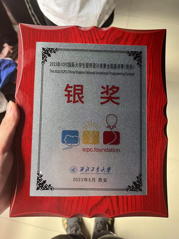 赛时最后五分钟很惊险地过了一题,不得不说线下赛的五个小时过得真的快,也没想到$XCPC$的第一块牌子是银的